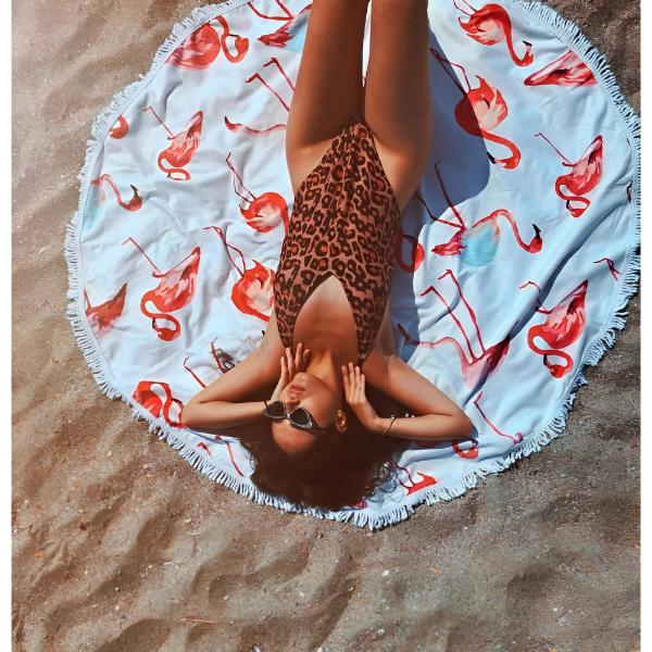 Kruhový uterák je určený na relaxáciu na pláži alebo pri bazéne, možno ho však nosiť aj uviazaný okolo tela ako odev.