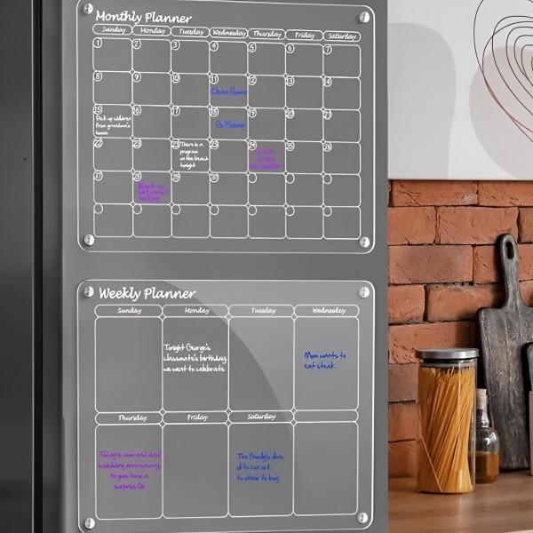 Jeho elegantný, priehľadný akrylový dizajn nielenže dodá vašej kuchyni moderný nádych, ale ponúka aj efektívny spôsob riadenia každodenných činností.